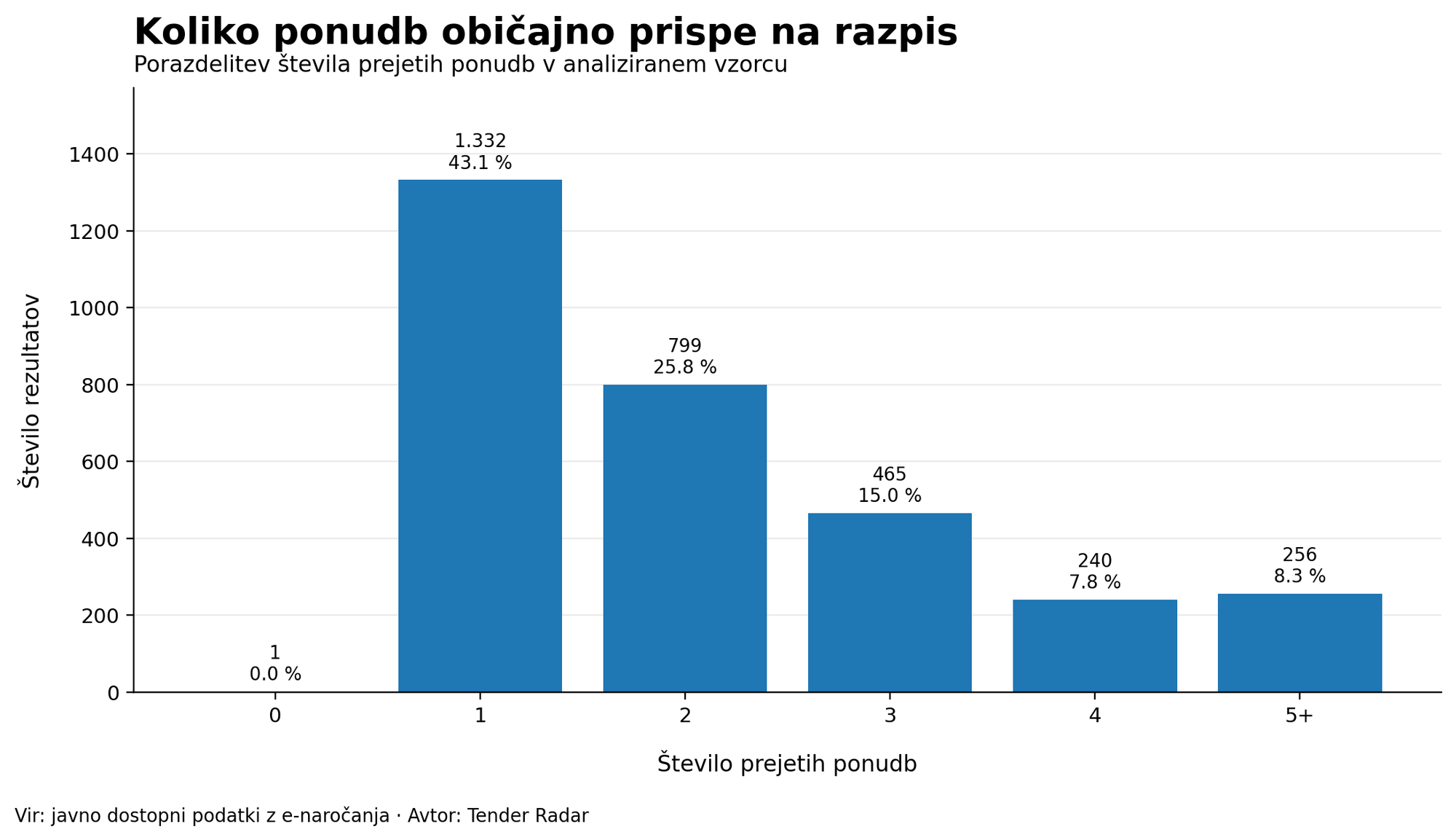 - pri 43,1 % razpisov je prispela samo ena ponudba