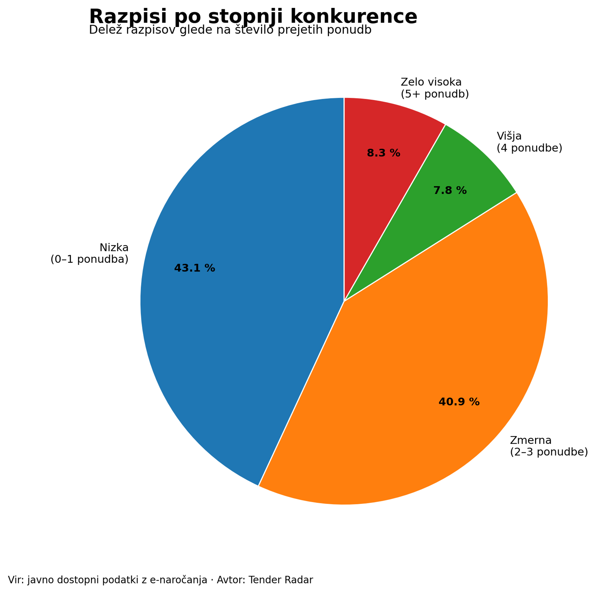 - samo pri 8,3 % razpisov je bilo pet ali več ponudb