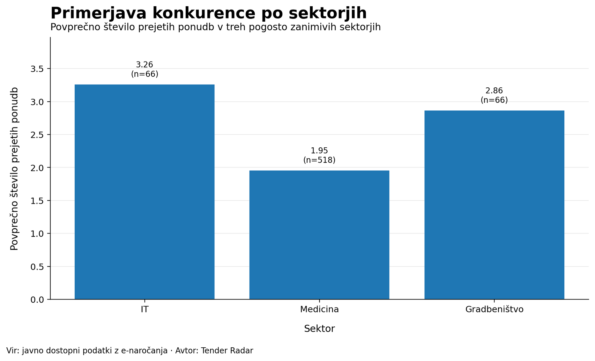 Na področju medicine je konkurenca v povprečju opazno nižja kot pri IT razpisih. To velja predvsem za medicinsko opremo, laboratorijske reagente in druge specializirane proizvode.